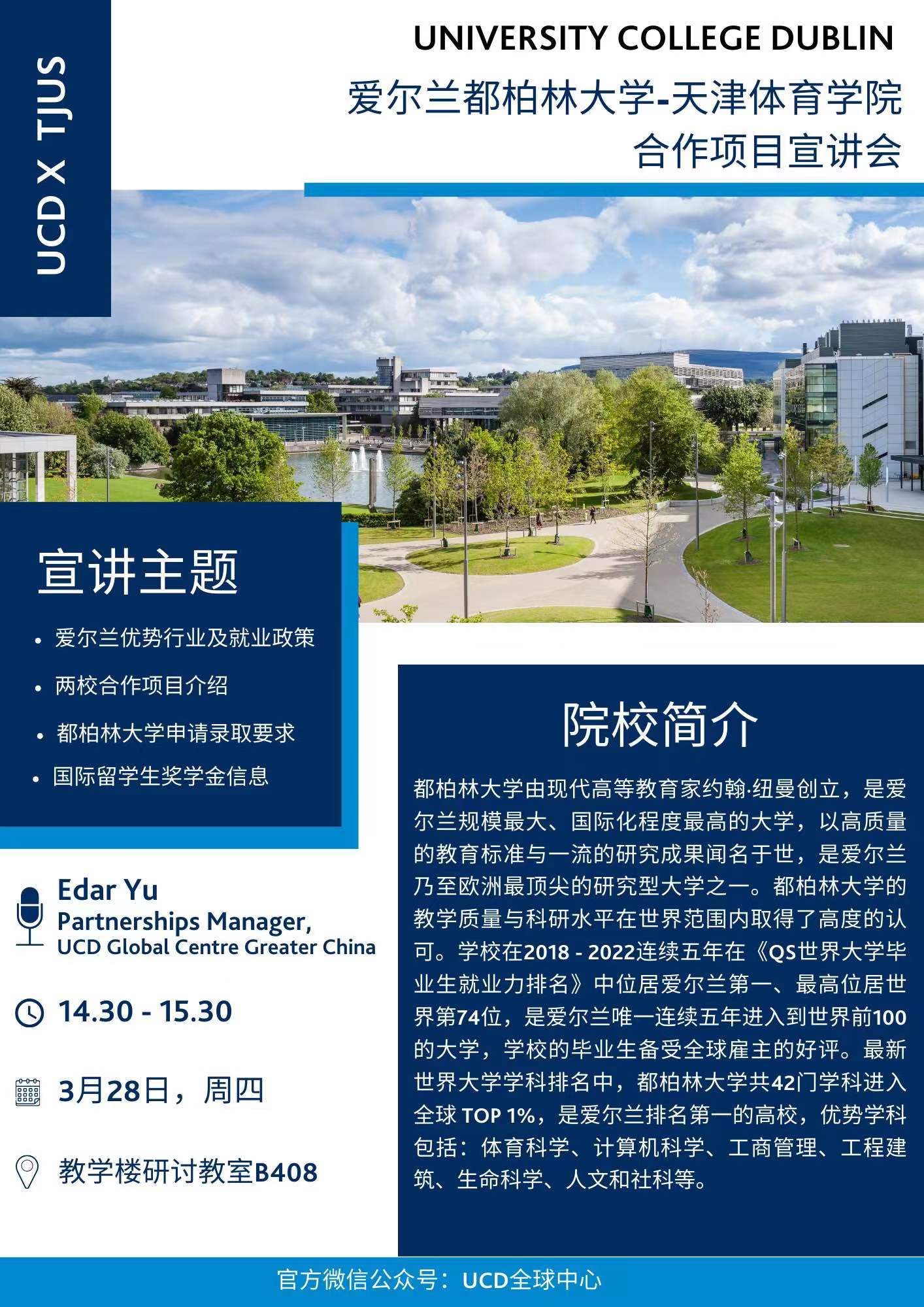 2024年爱尔兰都柏林大学3+1+1项目宣讲会通知