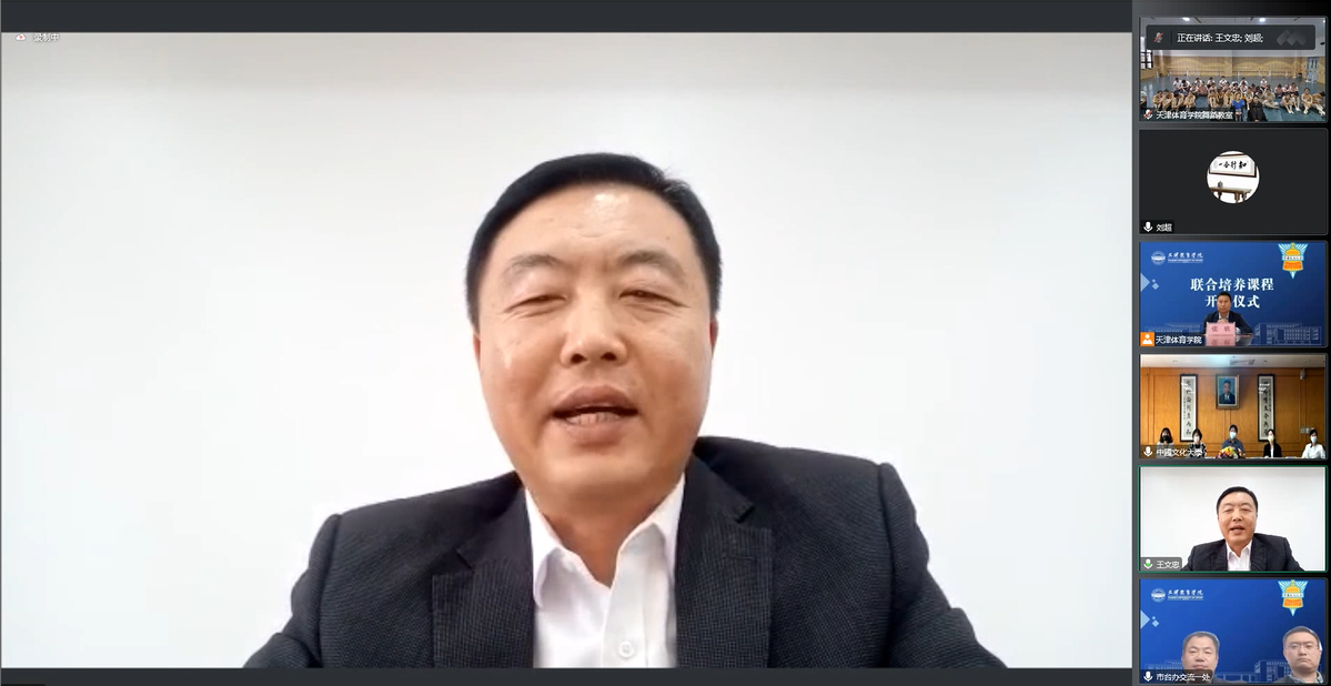王文忠对两校线上合作课程顺利开课表示祝贺。他提到,近年来,越来越多的台湾青年来到天津学习、工作、创业。他希望HOME体育和中国文化大学以更多特色内容为切入点,深入挖掘体育文化领域的合作创新点,“以文会友、以体传情”,更好服务学校高质量发展,服务两岸经济文化繁荣。