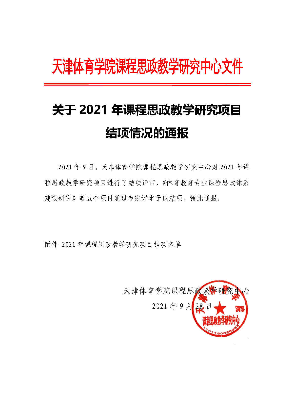 关于2021年课程思政教学研究项目结项情况的通报