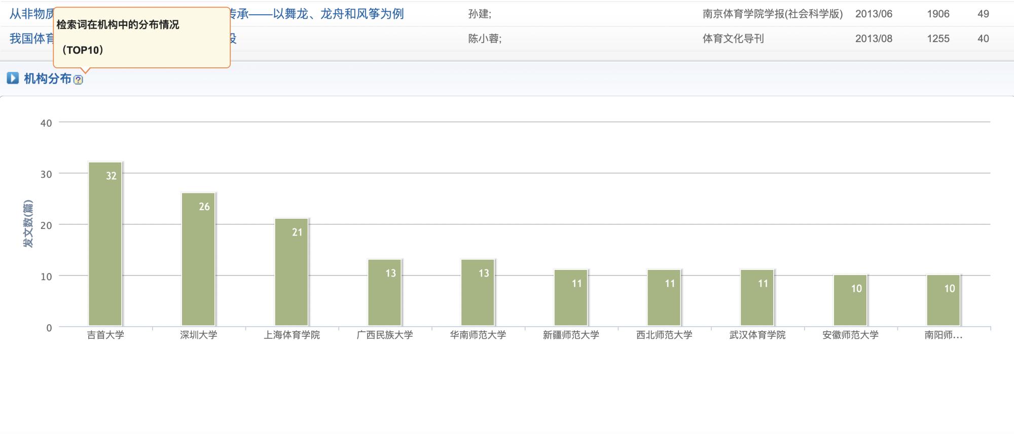 此外,通过机构分布栏,可以了解检索词在机构中的分布情况。