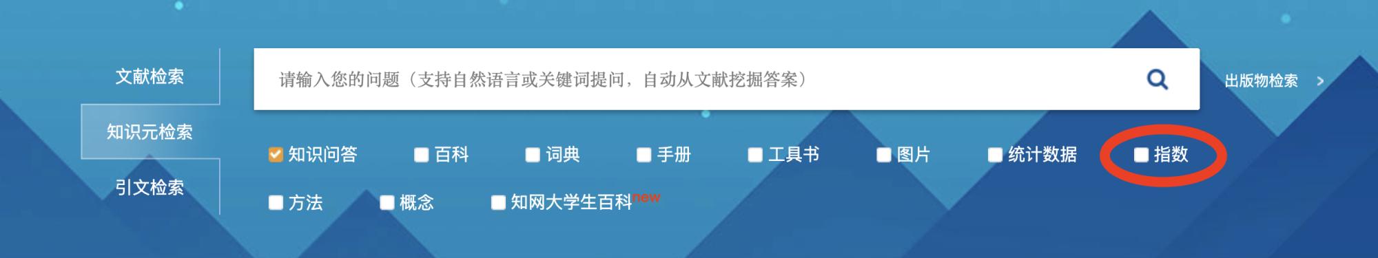 指数检索的入口在哪里?就在知网首页“文献检索”下方的“知识元检索”里。