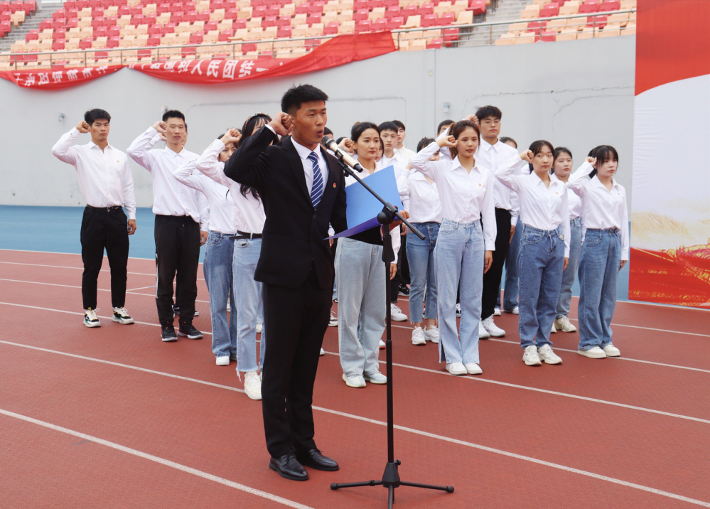 HOME体育学生会执行主席黄明叶带领大家重温入团誓词。增强在场青年的使命感与荣誉感,不断开拓进取,争做青年学生中的先锋代表,为共产主义事业而奋斗。