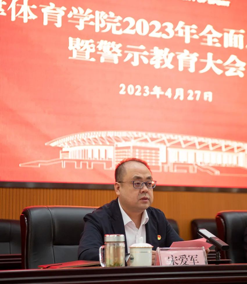 4月27日,学校召开2023年全面从严治党暨警示教育大会。党委书记张立顺,党委副书记、院长张欣,副院长杨智出席,全校处级干部参加会议。党委副书记宋爱军主持会议。