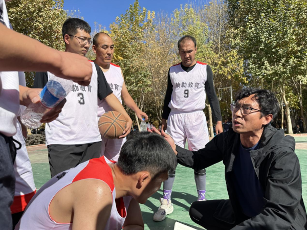 用情交流:作为策勒县教职工篮球领队,他认真负责,从基础的体能训练抓起,进行了一个多月的训练,每天高强度的运动导致旧伤复发,但他从未放弃,始终引领着团队前行。在训练备赛过程中,他不仅“授之以鱼”,更“授之以渔”,在提升团队整体实力的同时,更给队员们上了一节又一节生动精彩的篮球教学课,教授篮球基础训练方法和赛场战术,让队员们能在今后的篮球教学实践中实际运用。