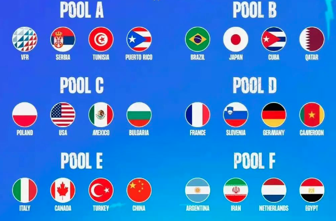 本届男排世锦赛共有24支队伍参赛,分为A、B、C、D、E、F共6个小组,中国男排与意大利、加拿大、土耳其男排同分在E组。E组的比赛在斯洛文尼亚的卢布尔雅那赛区举行。第一阶段小组赛进行单循环比赛,每组前两名和成绩最好的4支第三名晋级16强。第二阶段进行1/8决赛、1/4决赛、半决赛和决赛。半决赛和决赛均在波兰的卡托维兹市举行。