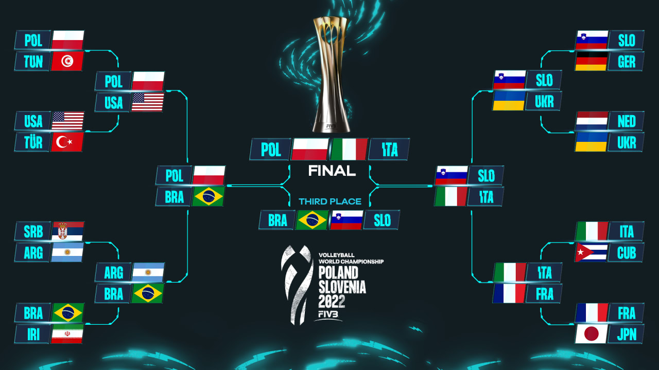北京时间9月12日凌晨,2022年男排世锦赛在波兰卡托维兹落幕。意大利队在决赛中3-1逆转战胜波兰队,时隔24年斩获队史世锦赛第4冠。波兰队冲击3连冠未果,继2006年世锦赛后再获亚军。巴西队3比1击败斯洛文尼亚队,获得季军,自2002年起连续6届世锦赛登上领奖台。随着本届世锦赛的结束,国际排联更新男排最新世界排名。波兰、意大利和法国位列前三。