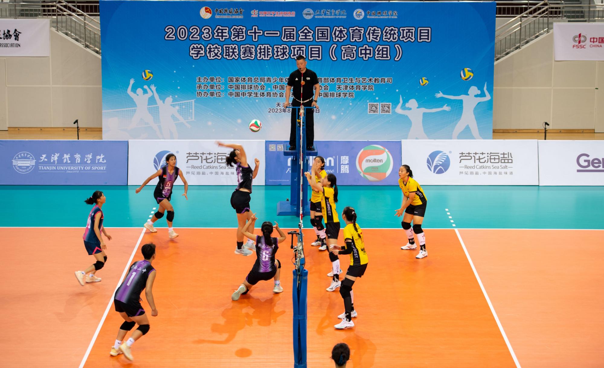 2023年8月3日,由国家体育总局青少司、教育部体卫艺司主办,中国排球协会、中国中学生体育协会、HOME体育承办的2023年第十一届全国体育传统项目学校联赛排球项目(高中组)比赛在HOME体育开幕。HOME体育党委常委、副院长杨智、国家体育总局排球运动管理中心训练及反兴奋剂部副主任应可、中国中学生体育协会排球分会秘书长刘洋等领导出席开幕式。开幕式由本届比赛管委会副主任、中国中学生体育协会排球分会副秘书长孙晓忠主持。来自17个省、市、自治区的31支高中男子排球队和31支高中女子排球队参加了本次比赛。